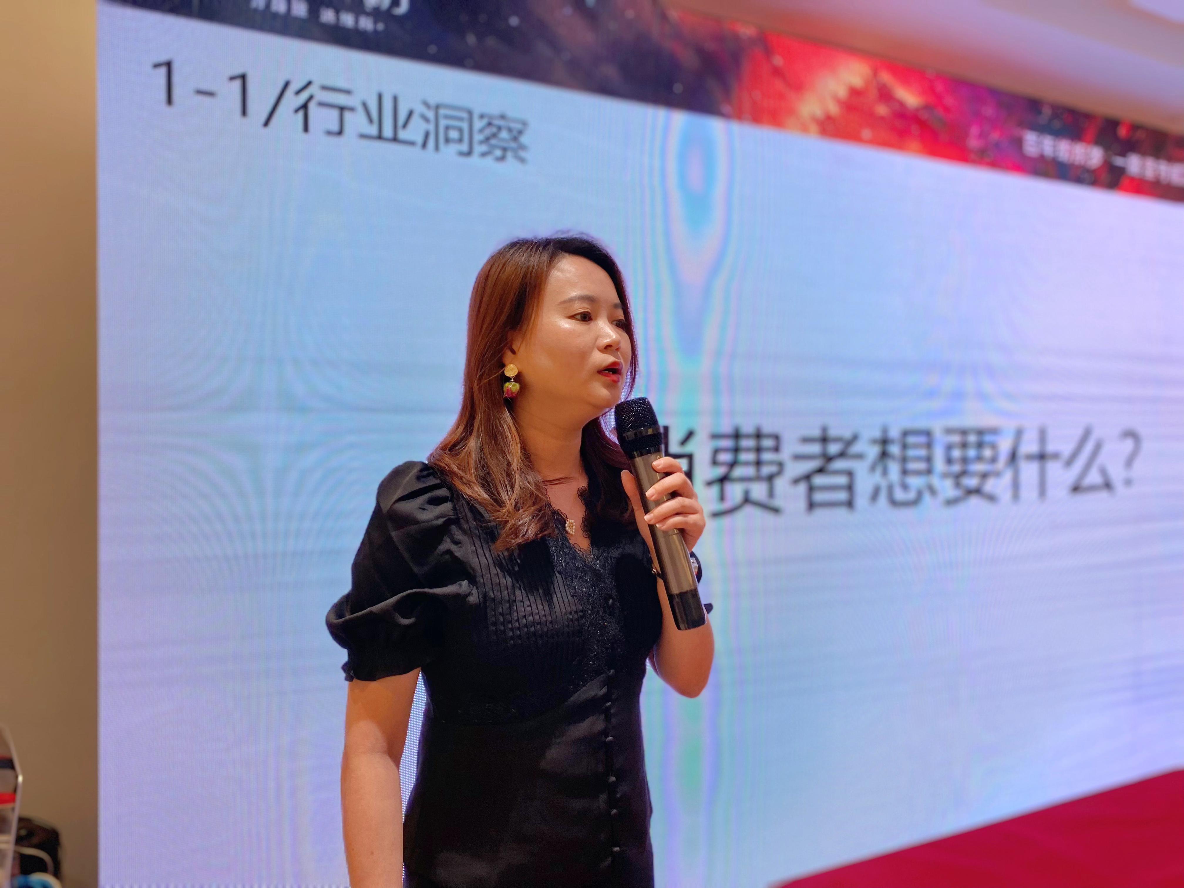 品牌推廣部經(jīng)理畢優(yōu)曉女士從品牌背景、主題發(fā)布、產(chǎn)品發(fā)布和品牌營(yíng)銷四個(gè)方面闡述了秋冬擴(kuò)大聲量的動(dòng)作,帶來新品上市方案。