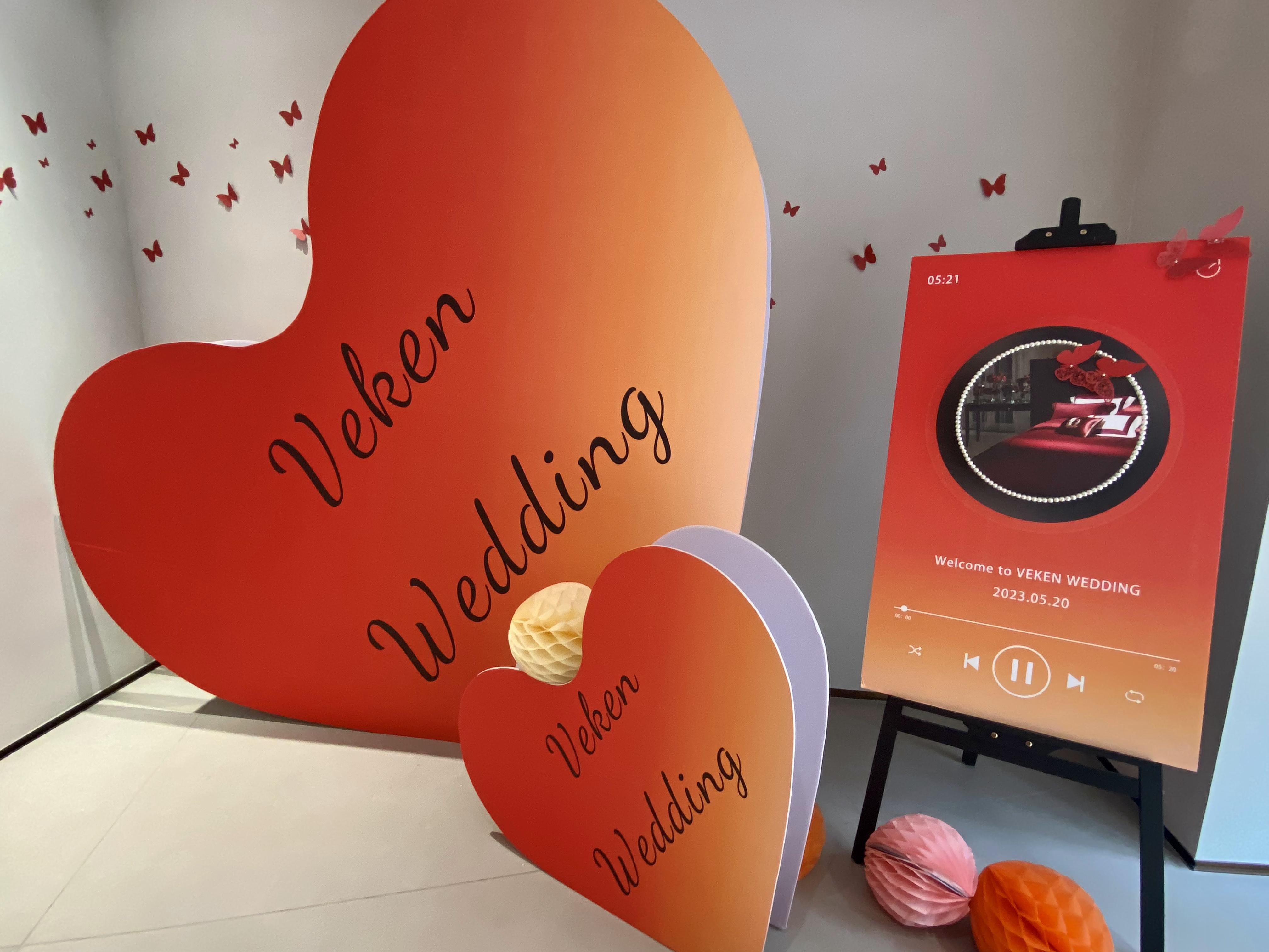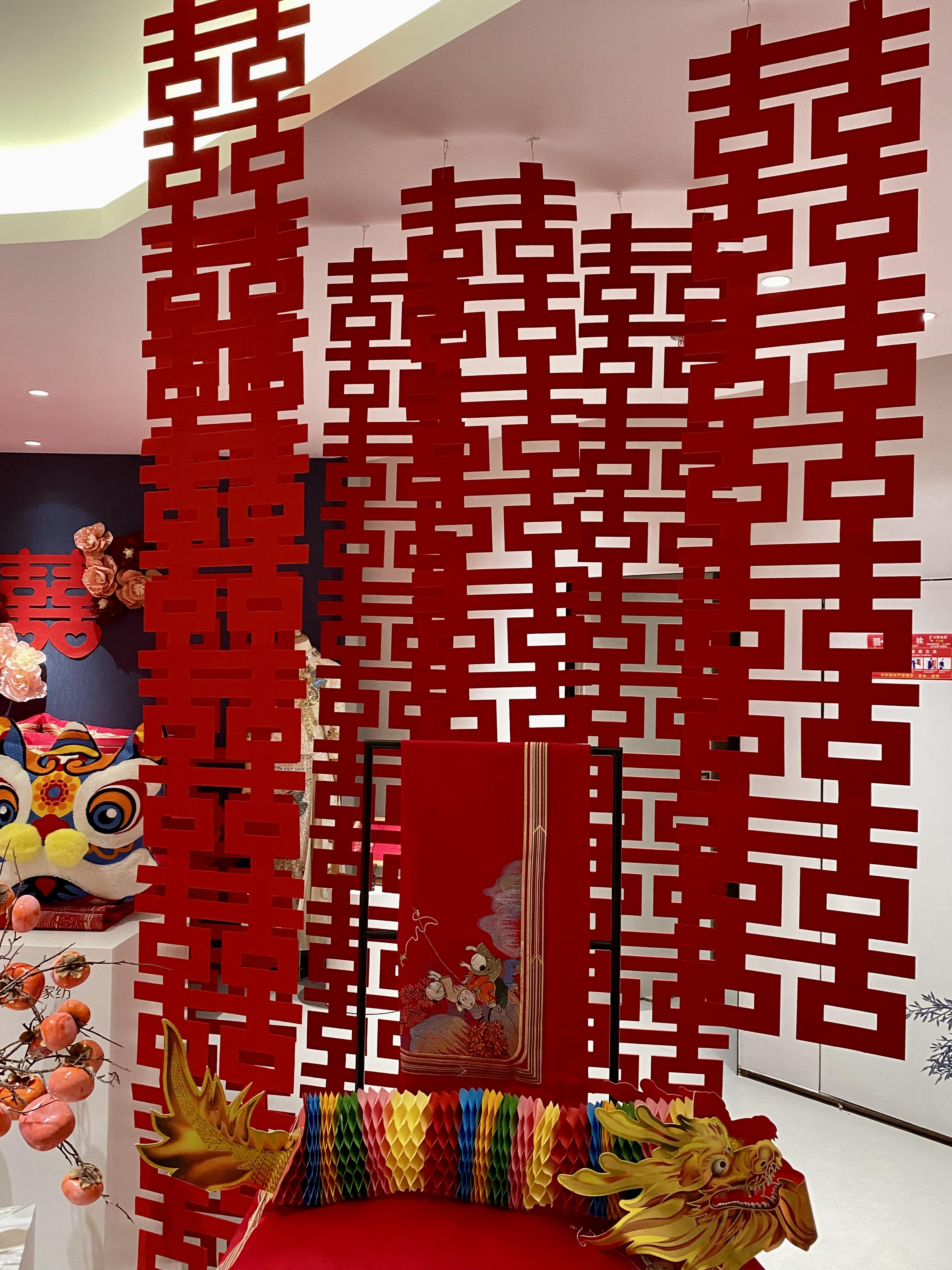 婚慶區(qū)通過精美的垂掛之“囍”、婚禮唱片機(jī)、維科喜樹等道具營(yíng)造出浪漫而喜慶的氛圍,創(chuàng)造了一個(gè)令人陶醉的夢(mèng)境。